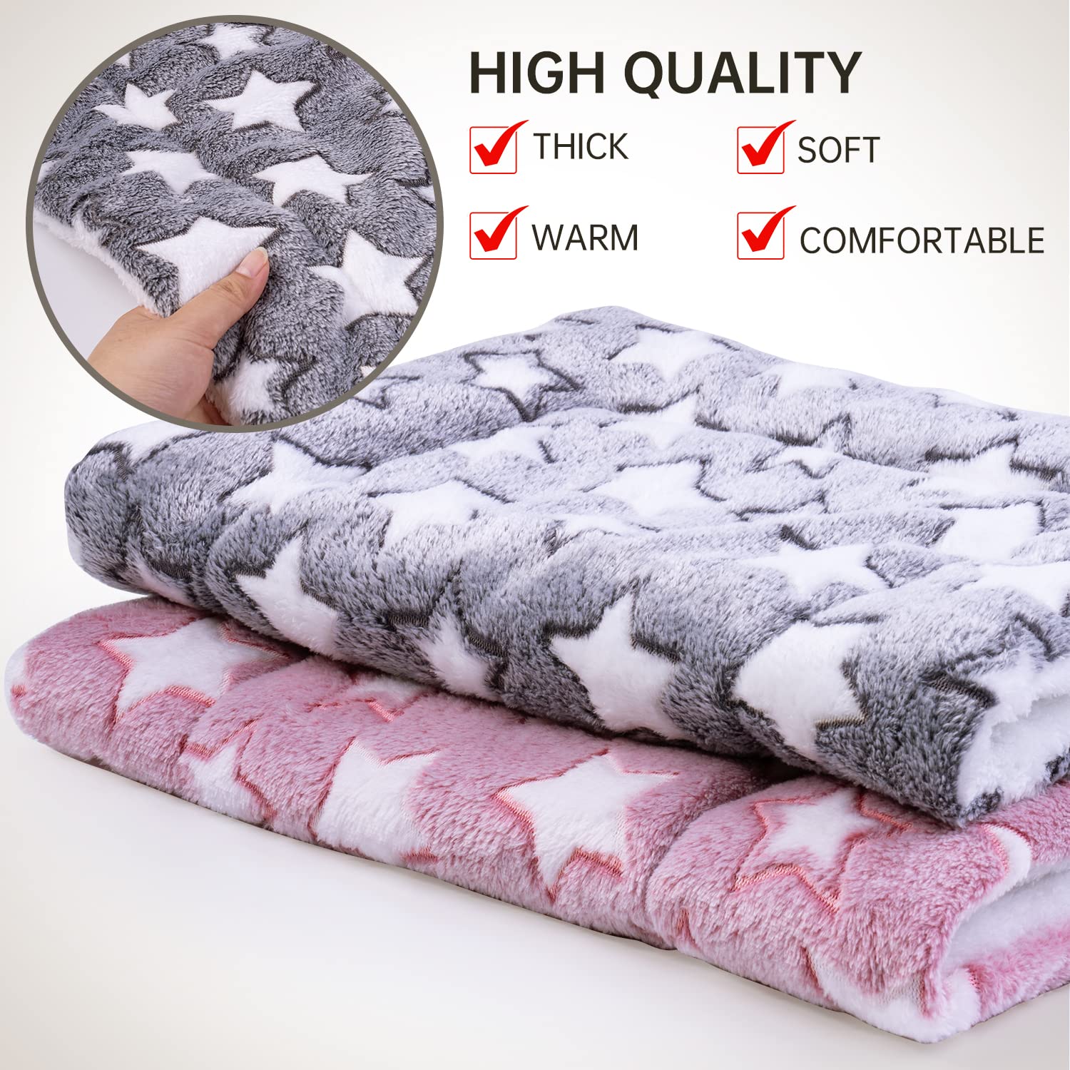 - 【Details &Design】There are 2 hamster beds (one gray, one pink) in each package. Cute star pattern on the top, soft fleece on the bottom.