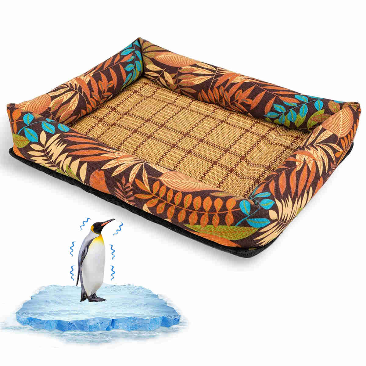 Summer Cool Moisture Resistant Linen Pet Bed, 1 Pack (Brown)